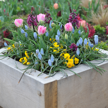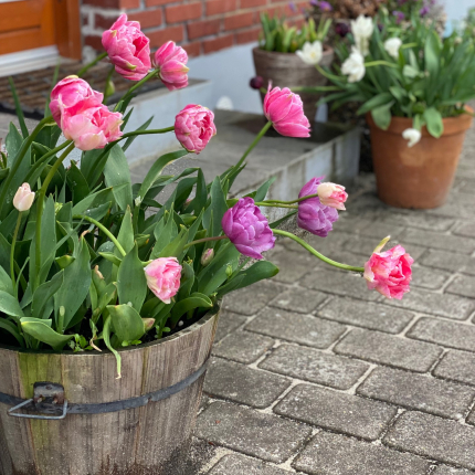 • Puķes podiņos